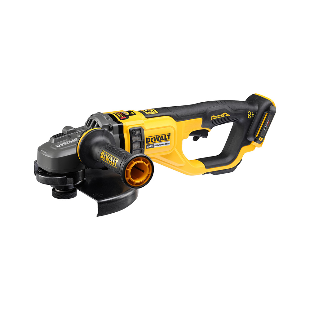 DeWalt 54V XR FLEXVOLT Kutna Brusilica nudi vrhunsku snagu i dugotrajnost zahvaljujući naprednoj tehnologiji bez četkica. Ova brusilica osigurava sigurnost korisnika s elektroničkom spojkom koja smanjuje povratni udarac i motorom koji se zaustavlja u sekundi.