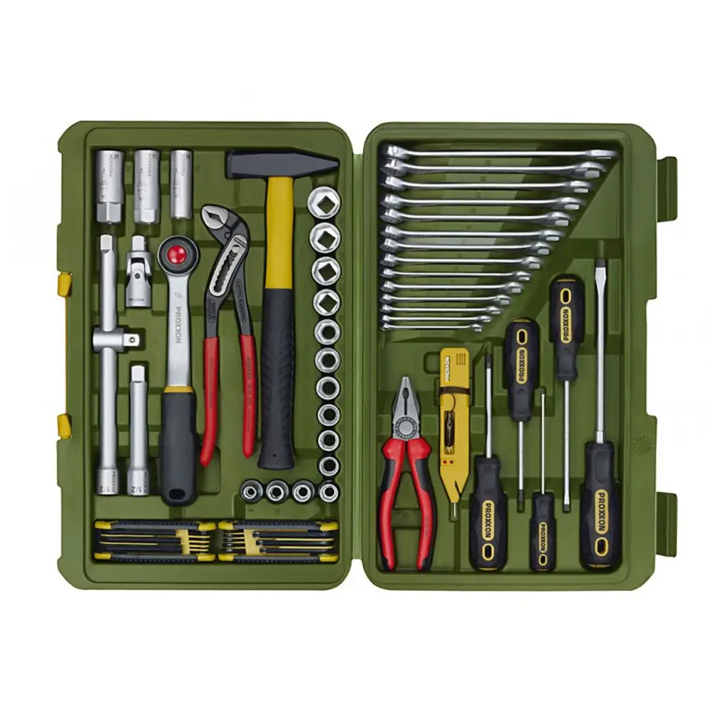 Set alata Proxxon PX23650 sadrži sve što profesionalni majstor treba za svakodnevne zadatke. Svi alati su precizno smješteni u koferu za jednostavan transport i organizaciju.
