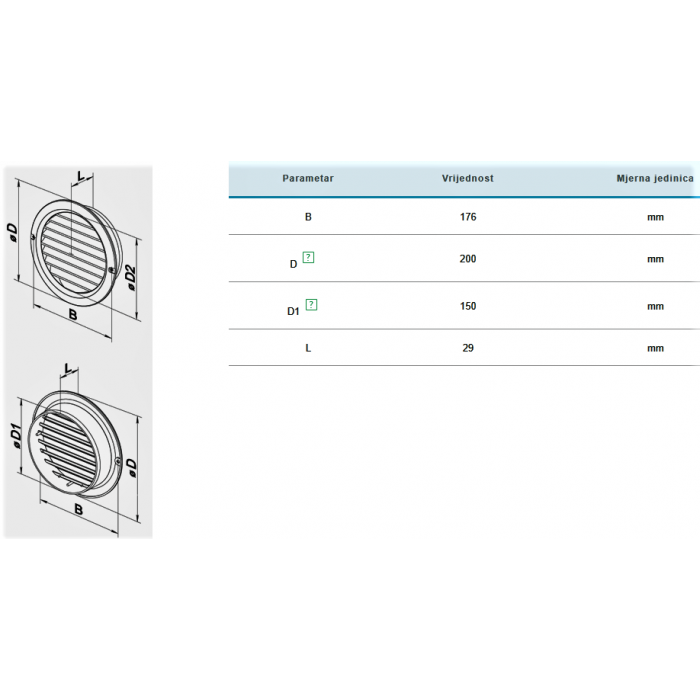 Rešetka ventilacijska ø118 mm – fiksna