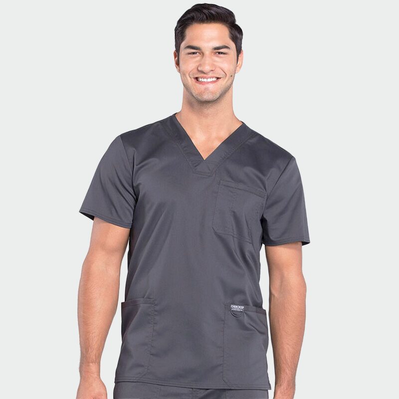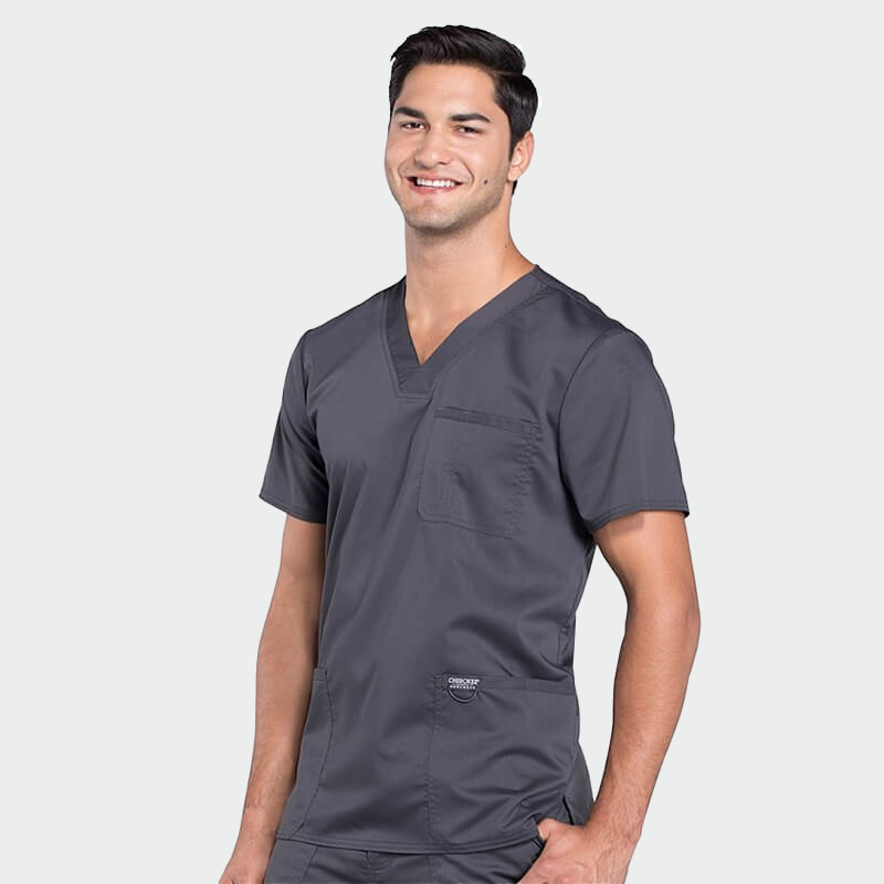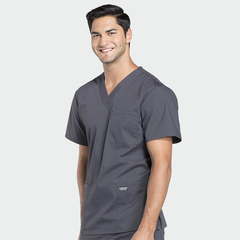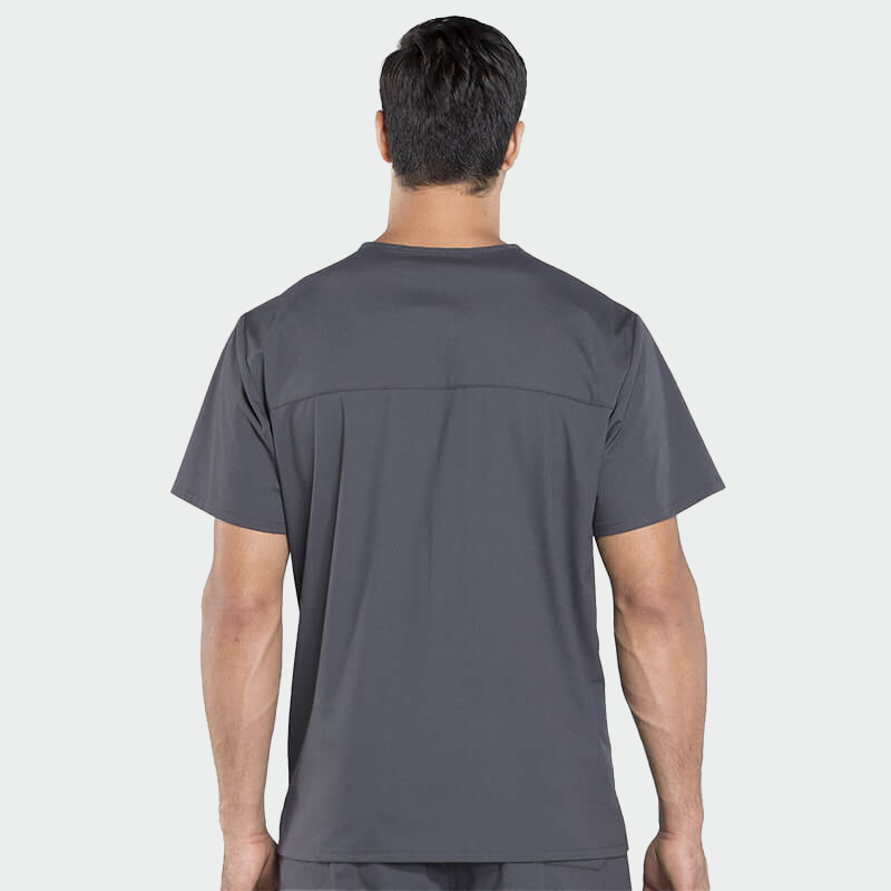 Ova muška medicinska bluza karakterizira V-izrez i kratki rukavi, što omogućuje slobodu kretanja. Ojačani šavovi osiguravaju dugotrajnost, čak i pri intenzivnoj upotrebi. Sastav materijala je 78% poliester, 20% viskoza i 2% elastin, težine 170g/m², što pruža iznimnu mekoću i elastičnost.