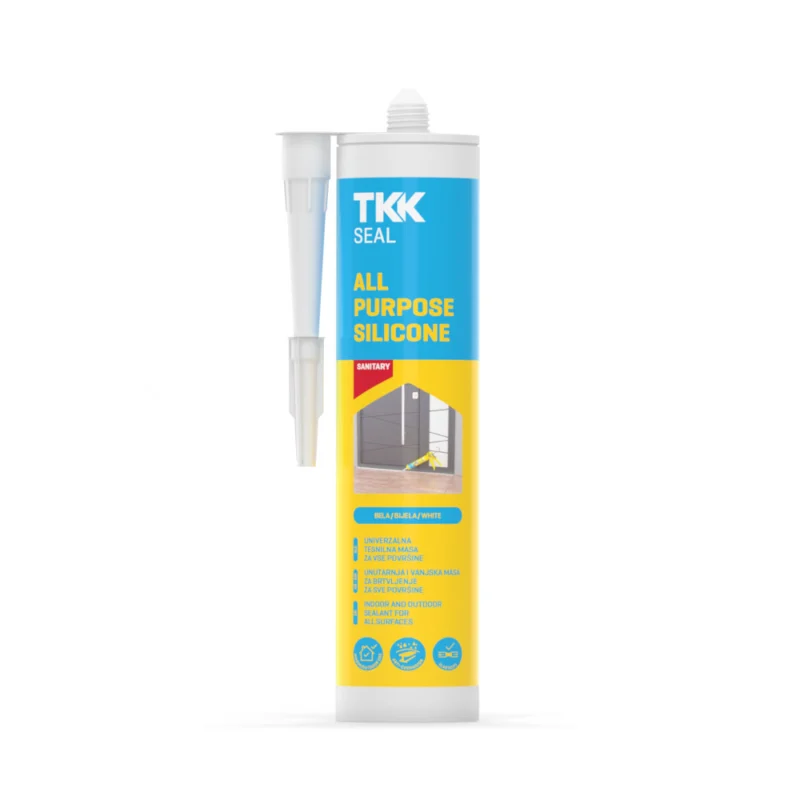 TKK SEAL All Purpose Silicone je trajno elastična masa za brtvljenje s izvrsnim prianjanjem na gotovo sve građevinske materijale, idealna za široku primjenu u graditeljstvu i kućnim popravcima.
